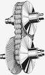 Bei dieser einfachsten Ausführung einer Gelenkkette drehen sich die Laschen auf Bolzen, die vernietet oder versplintet sind. Diese Ketten werden nach dem Erfinder André Galle (1761-1841) auch Gallketten genannt.